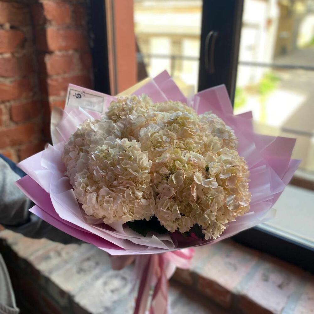 Красивый букет из 7 белых гортензий “Анеси-ле-Вьё”