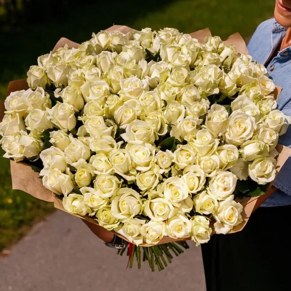 Роза белая 50 см – 75 шт.упаковка крафт-бумага – 1 шт.