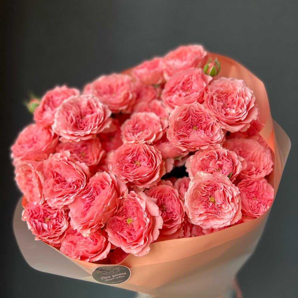 Атласная лента – 1 шт.Кустовая пионовидная роза – 11 шт.декоративная упаковка – 1 шт.