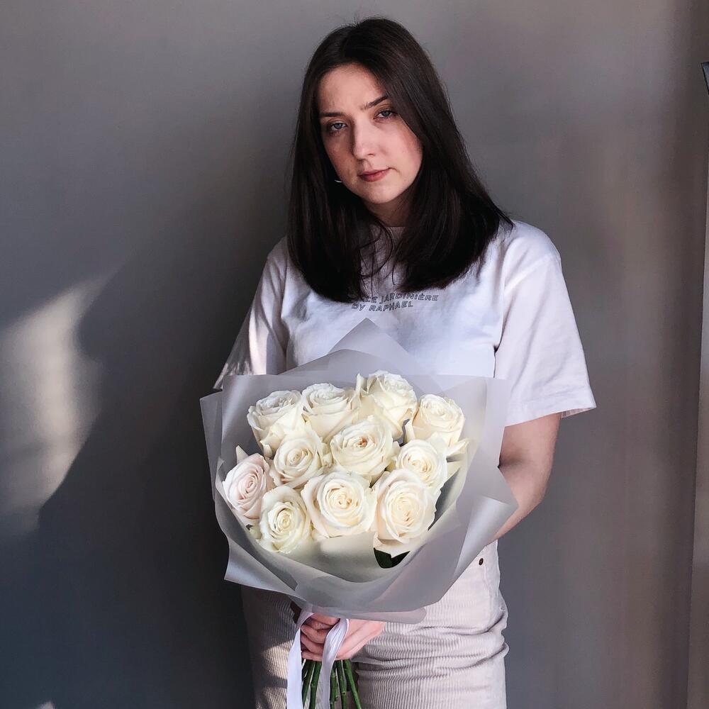 роза playa blanca премиум – 11 шт.Дизайнерская упаковка – 1 шт.Лента – 1 шт.