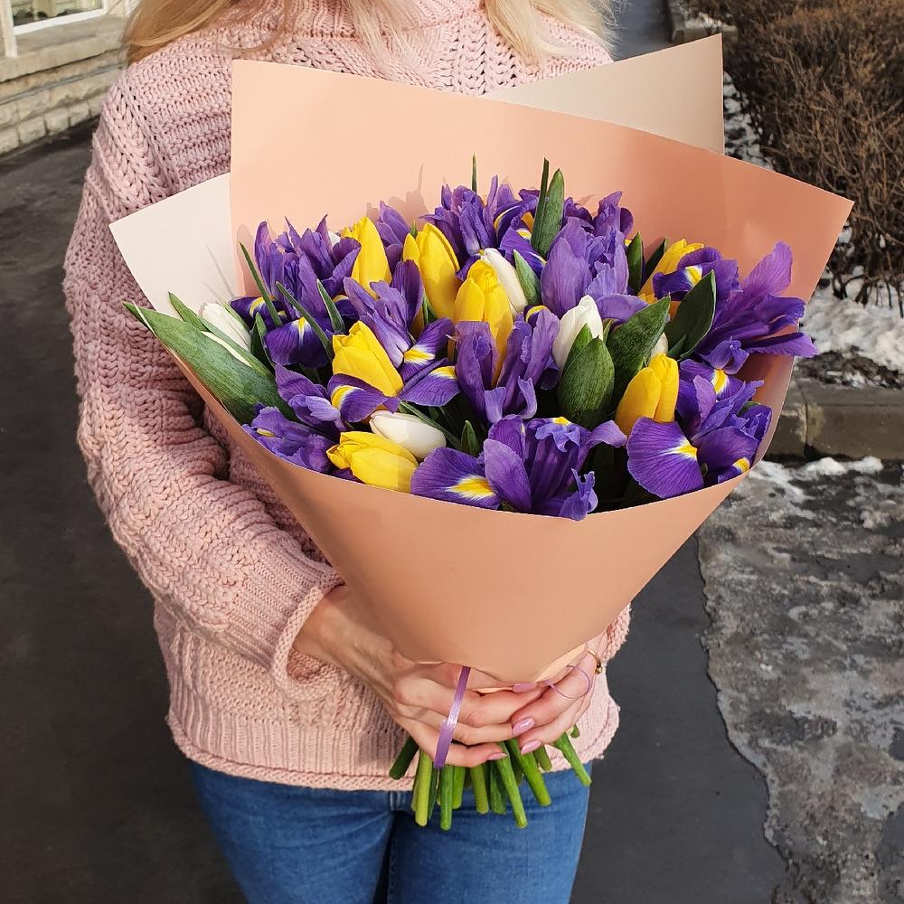 Весенний букет с тюльпанами и ирисами